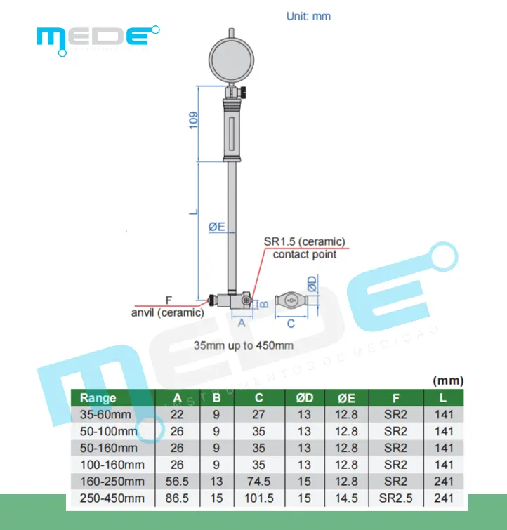 - Faixa de medição : 50-160mm