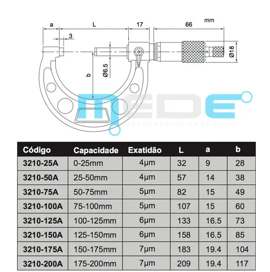 • Faixa de medição : 0-25mm